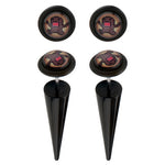 Domo kun raises the alarm on this cute pair of Domo kun earrings! The Domo Kun Arms Up Faux Taper Earrings are acrylic and surgical steel with externally threaded 18g bars. The tapers are shiny black, and each of the two earrings features an image of Domo kun running and holding his arms up in warning!