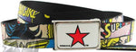 The powerful women of DC Comics are displayed together on this mesh-style DC Comics belt! The DC Comics Women Mesh Belt is adjustable and features a white buckle with a red star. The strap is decorated with images of Supergirl, Wonder Woman and Batgirl, along with their colorful comic book logos.