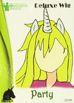 Have a unicorn party with this Pony wig that has a long, flowing head of bright yellow hair! The Party Deluxe Pony Wig features a long white unicorn horn and white ears. This Pony wig will bring you lots of attention at your next party!