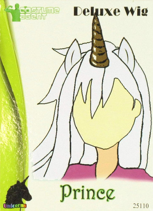 This Pony wig symbolizes royalty! The Deluxe Pony Wig is white with a brown horn and two white ears attached. Fancy yourself a unicorn and call yourself Prince when you wear this attention-getting Pony wig!