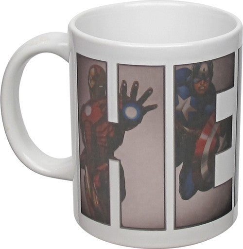 Assemble your favorite Marvel Comics superheroes on this fun, heat-changing Avengers mug! The Avengers Assemble HERO Heat Changing Mug is a white, ceramic mug that holds 12 ounces. Inspired by Marvel Comics' The Avengers, this heat-changing mug is white with the letters "HERO" in black letters until you heat it up, at which point the letters are filled by Avengers members Iron Man, Captain America, Thor and the Incredible Hulk. "Hulk smash!"