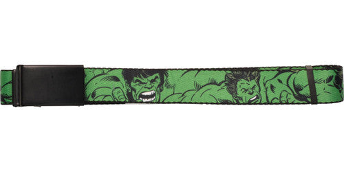 The Incredible Hulk rages and fights on this action-packed Incredible Hulk belt! The Incredible Hulk Name Expressions Mesh Belt is a green, 1.25 inch wide mesh belt, adjustable up to a 45-inch waist size. The belt features the title logo for Marvel Comics' The Incredible Hulk and multiple images of the green giant and Avengers member!
