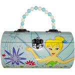 The world's cutest fairy waves a magic wand on this adorable, round Tinker Bell tin purse! The Tinkerbell Magic Wand Round Tin Purse is blue with a beaded plastic handle and a metal latch closure. A smiling Tinker Bell from Disney's Peter Pan spreads fairy dust amid multicolored flowers, and the handle features blue and white beads!