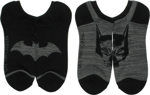 Show a gruesome twist on the Batman legend wearing these Batman socks for men! The Batman Skull Hero Logo Ankle 2 Pair Socks Set includes two pairs of ankle socks, one black and one gray, both with black cuffs, heels and toes. Inspired by DC Comics' Batman series, the black pair features a gray bat-logo and the gray pair features a black-outline sketch of the Dark Knight in skull form!