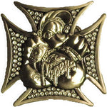 Popeye stands cross-armed on this elaborate Popeye belt buckle in the shape of a Maltese cross! The Popeye Cross Belt Buckle is silver and features faux gems on the four sides of the cross. Popeye stands in the middle, his oversized forearms below his angry face, with the word "Popeye" in silver letters in front. Hey, he is what he is!