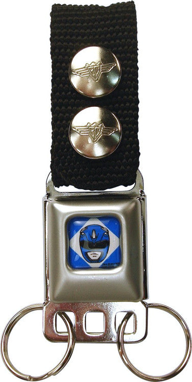 Carry the brainy Blue Ranger from TV's Mighty Morphin Power Rangers with your keys on this secure Power Rangers keychain! The Power Rangers Blue Ranger Buckle Keychain has a black belt loop with snap closures, a metal buckle and two detachable key rings. The buckle features a portrait of the Blue Ranger on a white triangle within a blue background. "It's morphin time!"