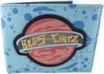 Play all day carrying this colorful and fun Rick and Morty wallet! The Rick and Morty Blips and Chitz Bi-Fold Wallet is a light blue, faux leather bifold with a window ID pocket. Based on TV's Rick and Morty, the exterior features a collage of blue planets and the "ringed planet" logo for the intergalactic arcade "Blips and Chitz." The interior has the arcade's slogan, "Squirt, Squeeze, Spray and Play!! All Day!"