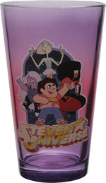 Join the Crystal Gems in Beach City and drink from this colorful and fun Steven Universe glass! The Steven Universe Characters Pint Glass is a purple pint glass, six inches tall. It features the title logo for TV's Steven Universe below an image of Steven surrounded by Amethyst, Pearl and Garnet. "Believe in Steven!"
