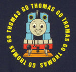 Revisit the Island of Sodor and catch the Thomas' Branch Line wearing this fun Thomas the Tank sweatshirt in juvenile sizes! The Thomas the Tank Go Thomas Juvenile Sweatshirt is navy blue with a double-sided print. The front and back feature the main character from the TV series Thomas & Friends, the blue Thomas the Tank Engine, as he appears on the series' title logo. The front features a round brown frame surrounded by the words "Thomas the Tank Engine" and "Go Thomas," while the back has the words "Go Thomas" in a circle. "Cinders and ashes!"