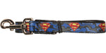 Take your pet for a real "power walk" with this cool Superman pet leash featuring a "blue and gray" camouflage pattern! The Superman Logo Blue Camo Pet Leash is a 1-inch wide, 4-foot-long nylon strap, with a hand loop and a metal swivel spring hook clip. It features the "S" logo for DC Comics' Man of Steel amid a camo design with light blue, dark blue, gray and black swirl patterns!