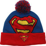 See double "S" symbols with this colorful and eye-catching Superman beanie! The Superman Logo Cuff Pom Beanie is blue with a red flip-up cuff. This flexible fit, knit hat from New Era features an oversize pom on top, above an image of the logo for DC Comics' Superman series, a red "S" within a yellow oval outlined in red. The turned-up cuff reveals a second image of the emblem for the Man of Steel!