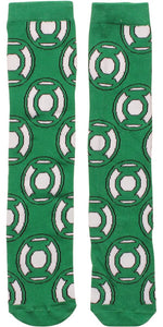 Raise the light of a magic lantern wearing this fun pair of Green Lantern socks! The Green Lantern Logo All Over Crew Socks are green men's crew socks. Each sock features repeated images of the green-and-white "lantern" symbol worn by the superhero star of DC Comics' Green Lantern series. Put on your Power Ring and join Hal Jordan in the intergalactic Green Lantern Corps!