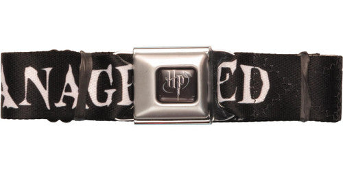 Be a Magical Mischief-Maker wearing this fun Harry Potter belt! The Harry Potter Mischief Managed Seatbelt Belt is black with a silver metal seatbelt-style buckle, adjustable from 24-inch to 42-inch waist sizes. The buckle features the "HP" initials/Golden Snitch logo for the Harry Potter movie series. The belt has the words "Mischief Managed" in large white letters, the incantation used to hide the Marauder's Map. Just don't look for the Chamber of Secrets!