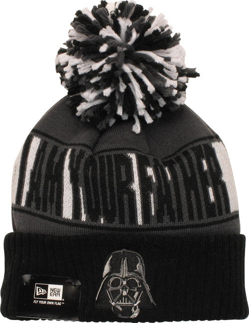 Tap into the dark side of the Force and relive a classic movie moment when you wear this cool Star Wars beanie! The Star Wars Vader Father Pom Beanie is dark gray with a black cuff and a black, white and gray pom. The upturned cuff is embroidered with Darth Vader's black helmet from the Star Wars movie series, and the top features the words "I am your father" in large black letters with white highlights between two black stripes. Welcome to the dark side!