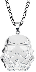Wear a menacing image of Darth Vader with this cool Star Wars necklace! The Star Wars Stormtrooper Helmet Silver Necklace is silver, stainless steel with a 22-inch chain with a lobster claw. The "cut out" pendant is shaped like the helmet of the evil Sith Lord who leads the Imperial Army and the Stormtroopers in the Star Wars movie series. Death to the Rebel Alliance!