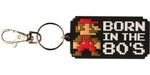 Relive Mario's efforts to save Princess Peach with this fun Super Mario Bros. keychain! The Super Mario Bros Born in the 80s Rubber Keychain is black. Inspired by the Super Mario Bros. videogame series, it has a charm shaped like an 8-bit, pixelated image of Mario, the heroic plumber, with the words "Born in the 80's" in white letters, a reference to the start of the Nintendo Entertainment System (NES) series of home consoles in 1983 in Japan and 1985 in North America. "Let's-a Go!"