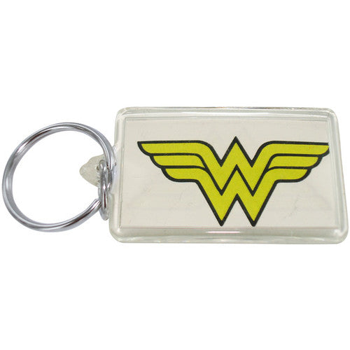 A bright yellow Wonder Woman logo makes this keychain stand out! Borrow the power of Wonder Woman with this Wonder Woman Logo Lucite Keychain. The white Wonder Woman keychain features Wonder Woman's "double W" logo, and will remind you of the power you can wield as a woman!