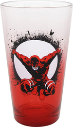 A red gradient pattern frames Daredevil as he explodes into action on this colorful and cool Daredevil glass! The Daredevil Circle Red Gradient Pint Glass is a 6-inch-tall glass that holds a pint. It features the Marvel Comics superhero from the long-running Daredevil series leaping out from a white circle!