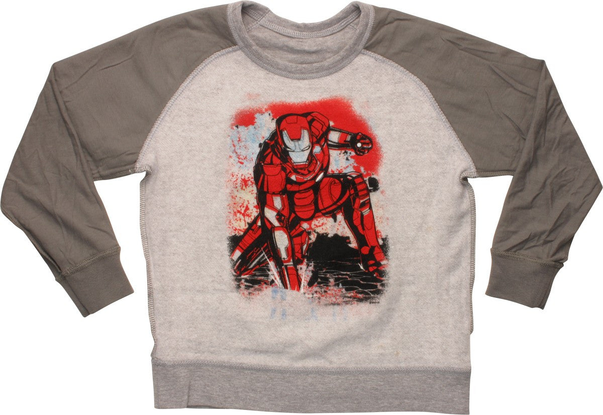Armor up for two sides of Tony Stark wearing this reversible, long-sleeved Iron Man t shirt in juvenile sizes! The Iron Man 3 Suits of Armor Juvenile Sweatshirt is heathered gray with dark gray sleeves. Inspired by the Marvel movie Iron Man 3, this warm and comfortable pullover-style sweatshirt features a paint-spattered portrait of Iron Man touching down on one side, and the reverse side has three "brushstroke" panels in blue, yellow and red framing three different types of armor!
