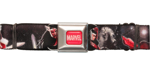 The Lady Sif wields her mighty sword on this cool Thor belt! The Thor Sif Journey Into Mystery Seatbelt Belt is black with a metal seat belt-style buckle closure, adjustable from 24- to 42-inch waist sizes. The silver buckle features the "Marvel" logo while the belt has images from Marvel Comics' Journey Into Mystery Featuring the Lady Sif, a spinoff from The Mighty Thor universe that ran from 2011 to 2013 and centered on the fierce female Asgardian warrior!