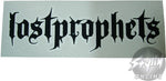 The Gothic style of this decal matches the alternative-rock style of the Welsh band Lostprophets. The Lostprophets Name Black Decal is a vinyl rub-on decal shaped like a rectangle, with a clear background to the black letters forming the post-hardcore band's name, "lostprophets." Start something!