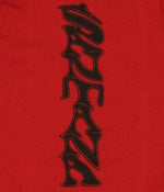 Connect your infant with a musical legend with this Santana snap suit that reproduces images from the band's debut album, Santana. The Santana Lion Red Snap Suit is a red creeper with a double sided print, and will keep your infant warm and snug. It features the well-known lion face on the front, which has several hidden images in it, and the "Santana" logo on the back in black letters.