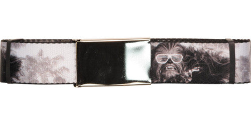 Palm trees provide a vacation-like background for a windblown Chewbacca on this fun Star Wars belt! The Star Wars Chewbacca Palms Wide Mesh Belt is extra wide at 1.5 inches, adjustable up to a 45-inch waist size. The belt features images of Chewbacca, Han Solo's co-pilot in the Star Wars movie series, wearing shades!