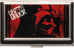 Dwell on the dark side with this cool Star Wars card case! The Star Wars Darth Vader Name Card Case is silver. The top features a crimson-and-black, extreme closeup of Darth Vader, the evil Sith Lord from the Star Wars movie series, and the name "Darth Vader" in white letters. "Your destiny lies with me Skywalker."