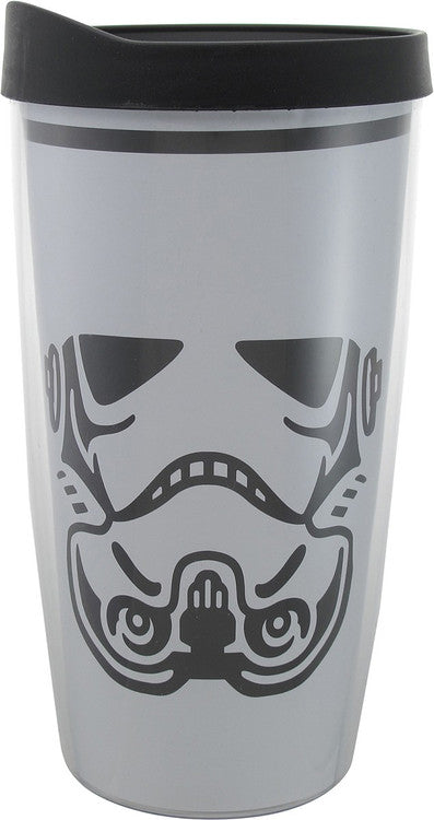 Stay on alert for Rebel Alliance infiltrators with this fun Star Wars travel mug! The Star Wars Stormtrooper Helmet Travel Mug is white with a snap-on lid, and holds 16 ounces. Inspired by the Star Wars movie series, each side features a black-outline sketch of an Imperial Stormtrooper, working from the dark side of the Force to preserve the Galactic Empire!