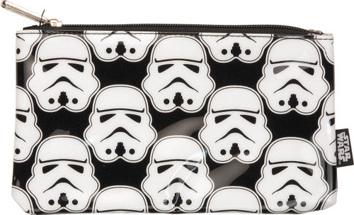 Keep a galactic army by your side with this fun Star Wars pencil case! The Star Wars Stormtrooper Helmets Pencil Case is white with a zipper closure. It features repeated images of white-helmeted Stormtroopers from the Star Wars saga!