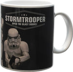 A trio of ruthless Stormtroopers gets ready to blast away on this cool Star Wars mug! The Star Wars Stormtroopers Open the Blast Doors Mug is a black, ceramic mug that holds 11 ounces. It features the word "Stormtrooper" above three Galactic Empire troopers pursuing Han Solo and Chewbacca in the original Star Wars movie and shouting, "Open the blast doors!"