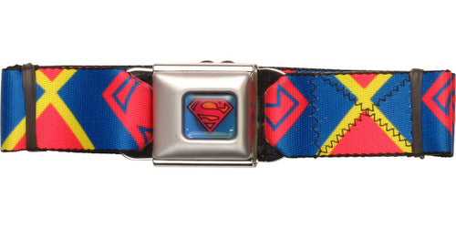 Celebrate the Man of Steel with this colorful and artistic Superman belt! The Superman Big Logos Seatbelt Belt is red and blue with yellow "X" stripes. The buckle features a red-and-orange version of the iconic "S" logo from DC Comics' Superman series, and the belt has the logo in red with blue lines!