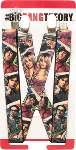 The wacky stars of TV's The Big Bang Theory strike superhero poses on this funny set of Big Bang Theory suspenders! The Big Bang Theory Comic Heroes Suspenders include two adjustable elastic straps, each 1-inch wide, with metal clips. Each suspender features portraits of Sheldon, Penny, Howard, Raj and Leonard reproduced from a comic book-style poster, with the words "He will destroy you with...mind bullets!!!"