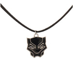 Join the Wakanda tribe and wear this cool Black Panther necklace! The Black Panther Movie Mask Logo Necklace is a black, 22-inch, leather cord chain with a charm. Based on the Marvel movie Black Panther, the charm is shaped like the mask worn by King T'Challa as the superhero Avengers member Black Panther. "Wakanda Forever!"