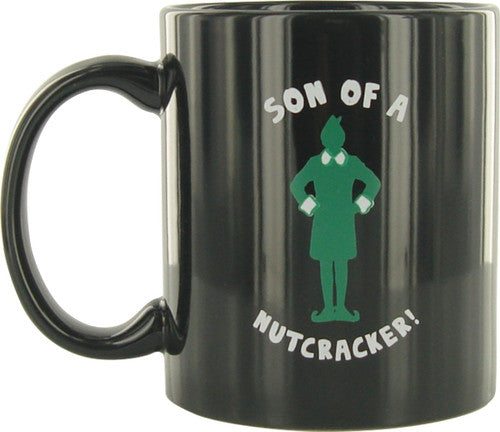 Will Ferrell fans will enjoy drinking from this funny Elf mug featuring a quote from the Christmas movie Elf! The Elf Son of a Nutcracker Mug is black and holds 12 ounces. This ceramic mug features a green outline image of Buddy the Elf surrounded by the words "Son of a nutcracker!" which Buddy says when hit by a snowball in the movie Elf.